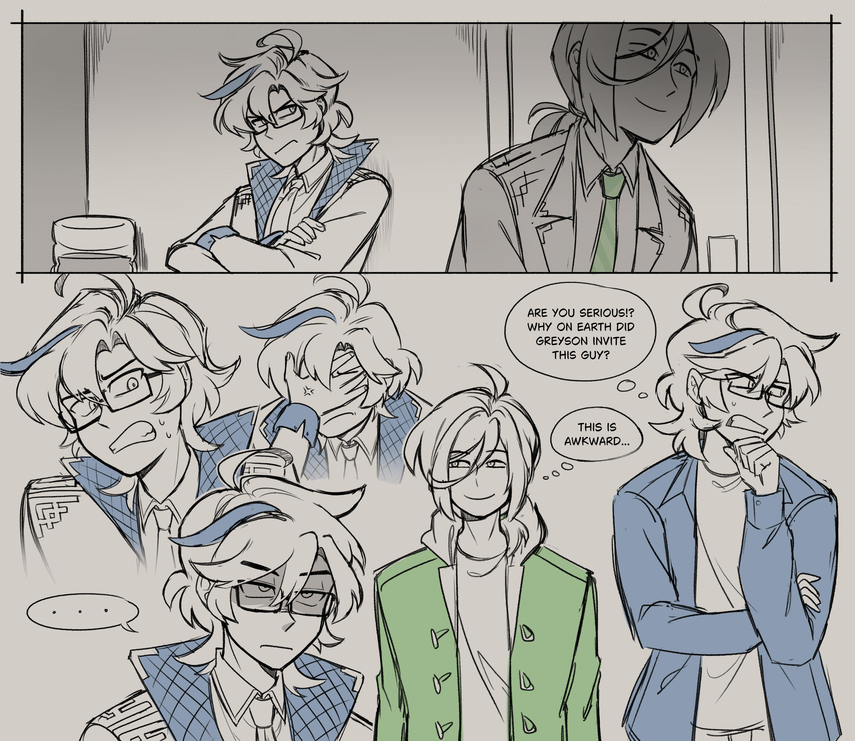 Greyson is their childhood friend. They bicker a lot with each other and are playfully rude. Both of them care deeply for each other, but it’s inferred and rarely stated. They're often seen together in a group with Zach.