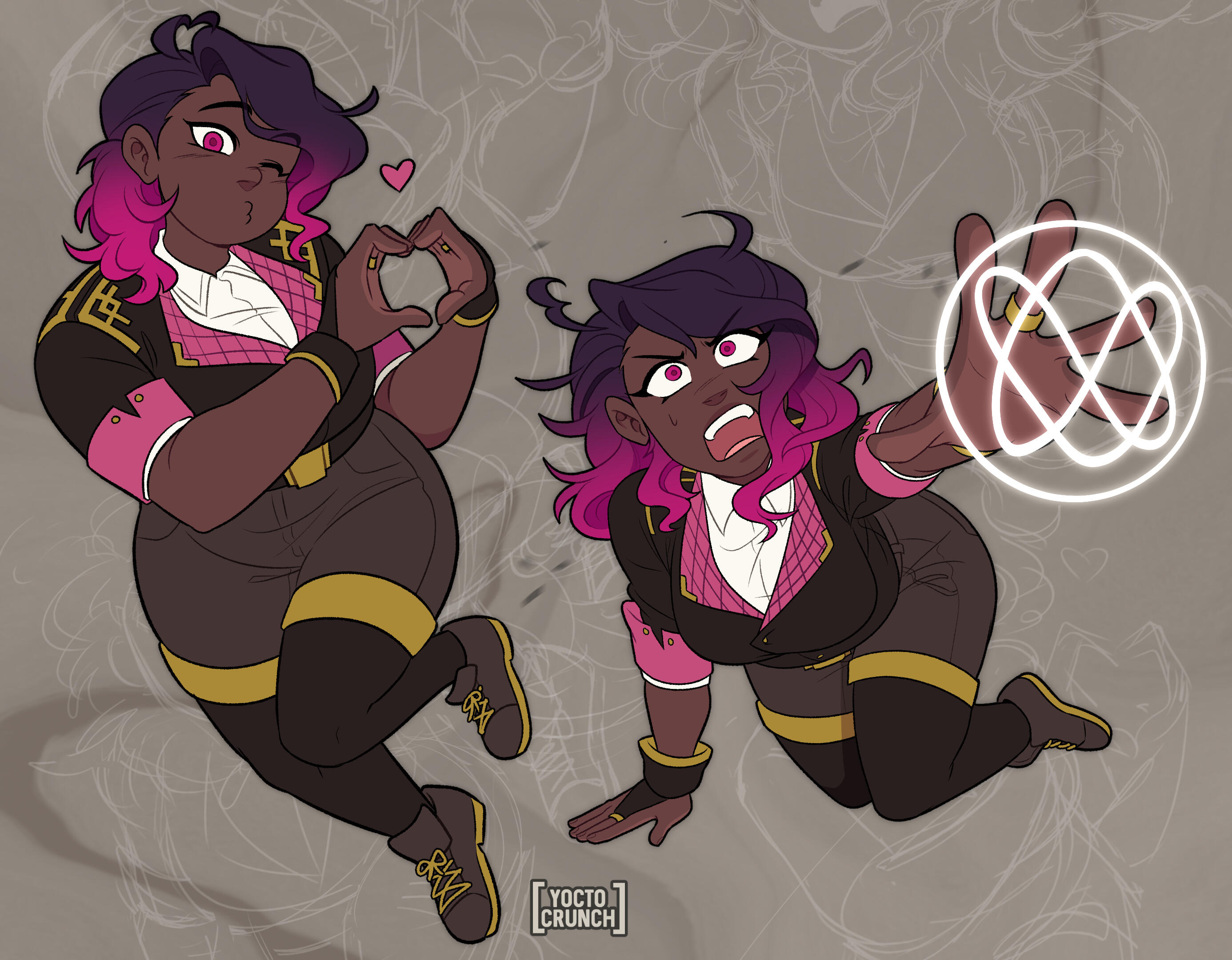 Mai Kallikos - Her leader and good friend. Genesis looks up to Mai for their courage, confidence, and rationale. She holds a massive one-sided crush on Mai and is constantly flirting with them but Mai is too dense to notice.