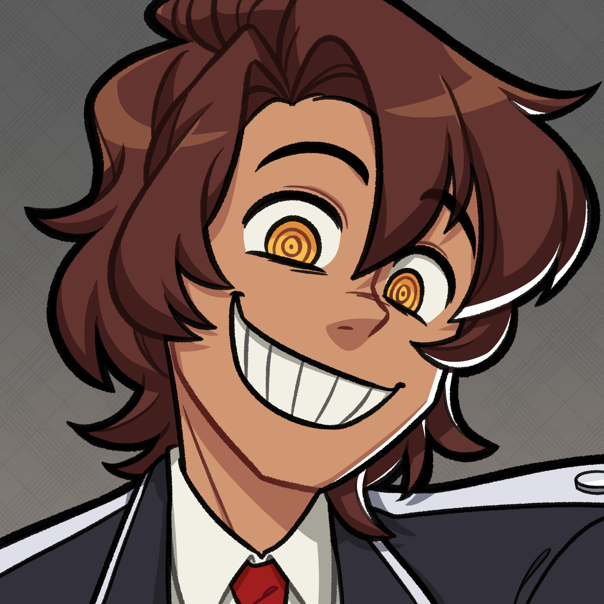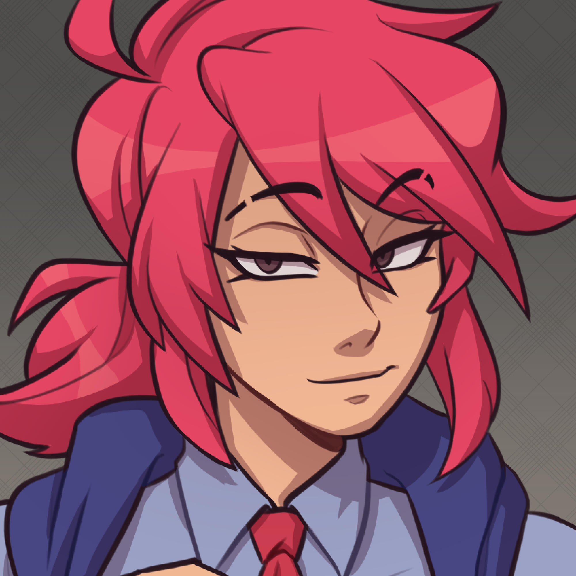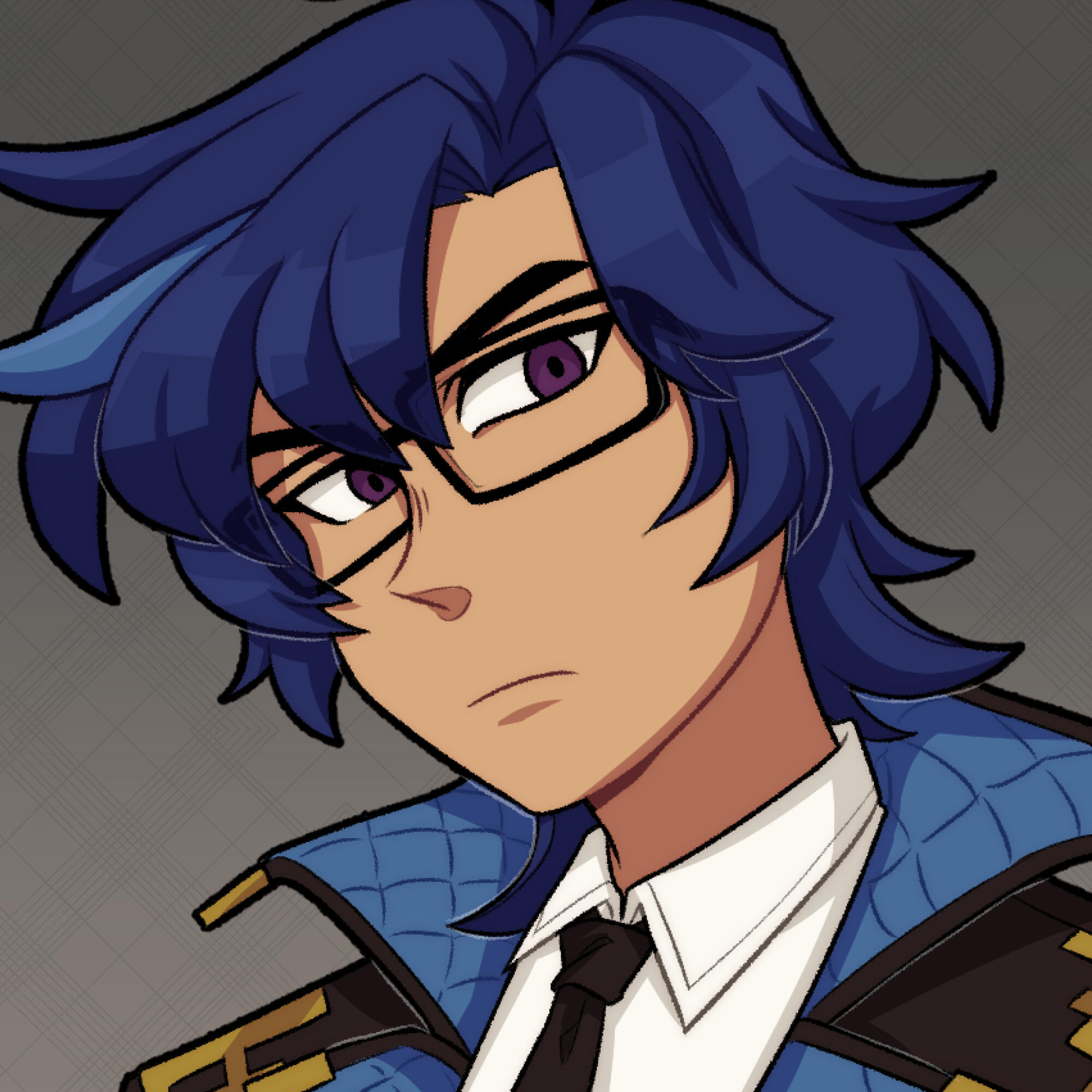 Wears a button-up under their uniform. First button is loose.